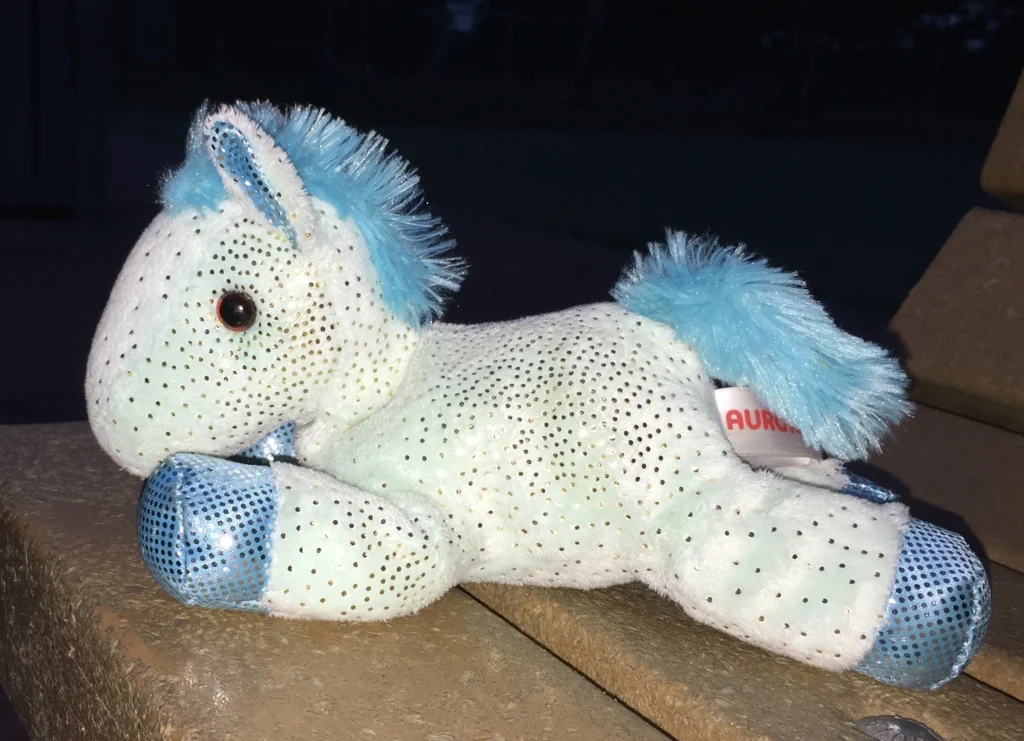 Instead, I was somehow made to buy a light-blue horse plush toy.